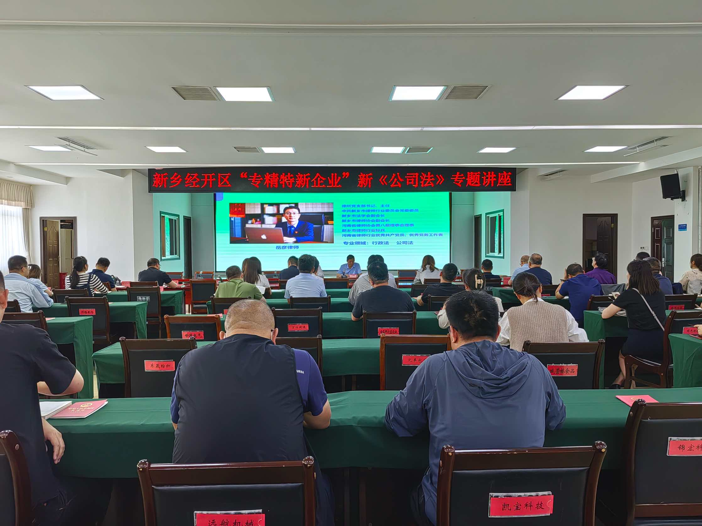 为深入贯彻落实习近平总书记重要指示精神和省、市关于培育和扶持“专精特新”企业的工作要求,以法治方式推动“专精特新”企业提质扩量增效,优化法治化营商环境,进一步激发全区实体经济活力,5月9日,新乡经开区综合行政执法局联合经发局特邀请河南中原法汇律师事务所主任岳彦作专题讲座。经开区领导张彬魁主持讲座,纬七路街道办、各区属部门负责同志,辖区50家“专精特新”认定企业及培育企业高级管理人员共计70余人参加讲座。