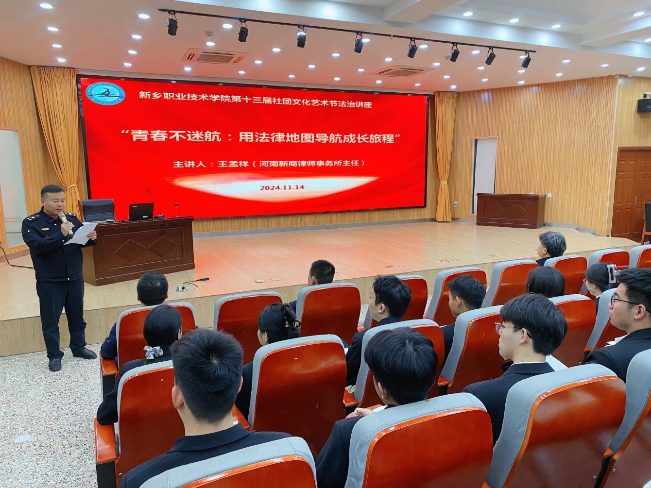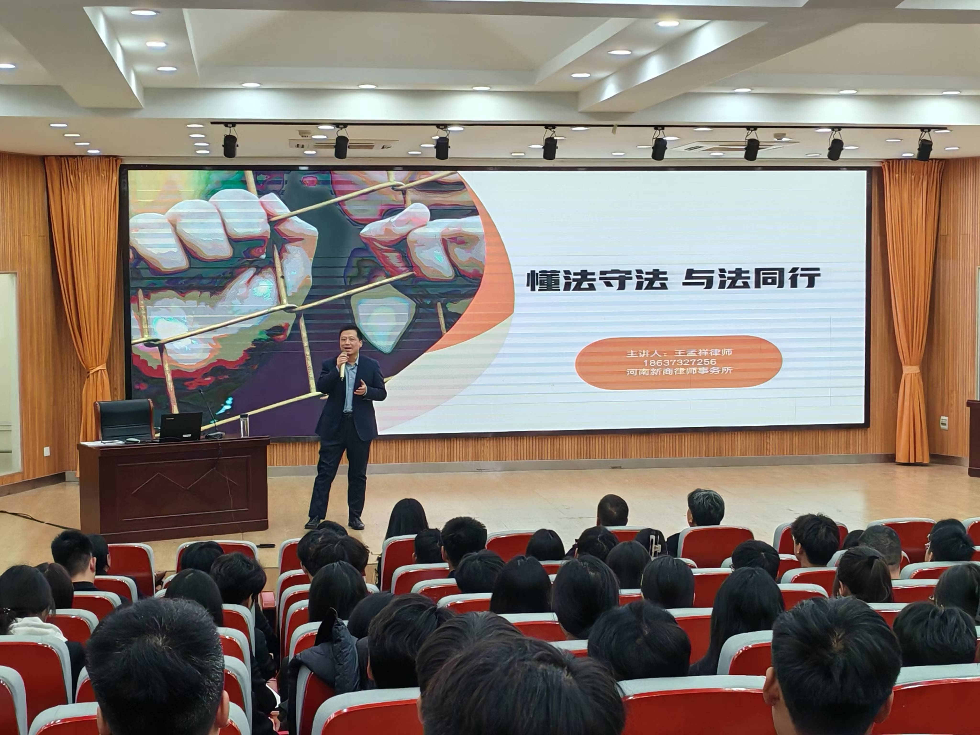 近年来,电信网络诈骗犯罪及校园暴力案件在学生群体中呈上升趋势,为进一步增强在校学生的法治意识和自我保护意识,维护校园安全,11月14日,新乡经开区综合行政执法局携手经开区法律服务中心新商律师事务所在新乡职业技术学院开展“懂法守法 与法同行”大学生法律知识讲座。
