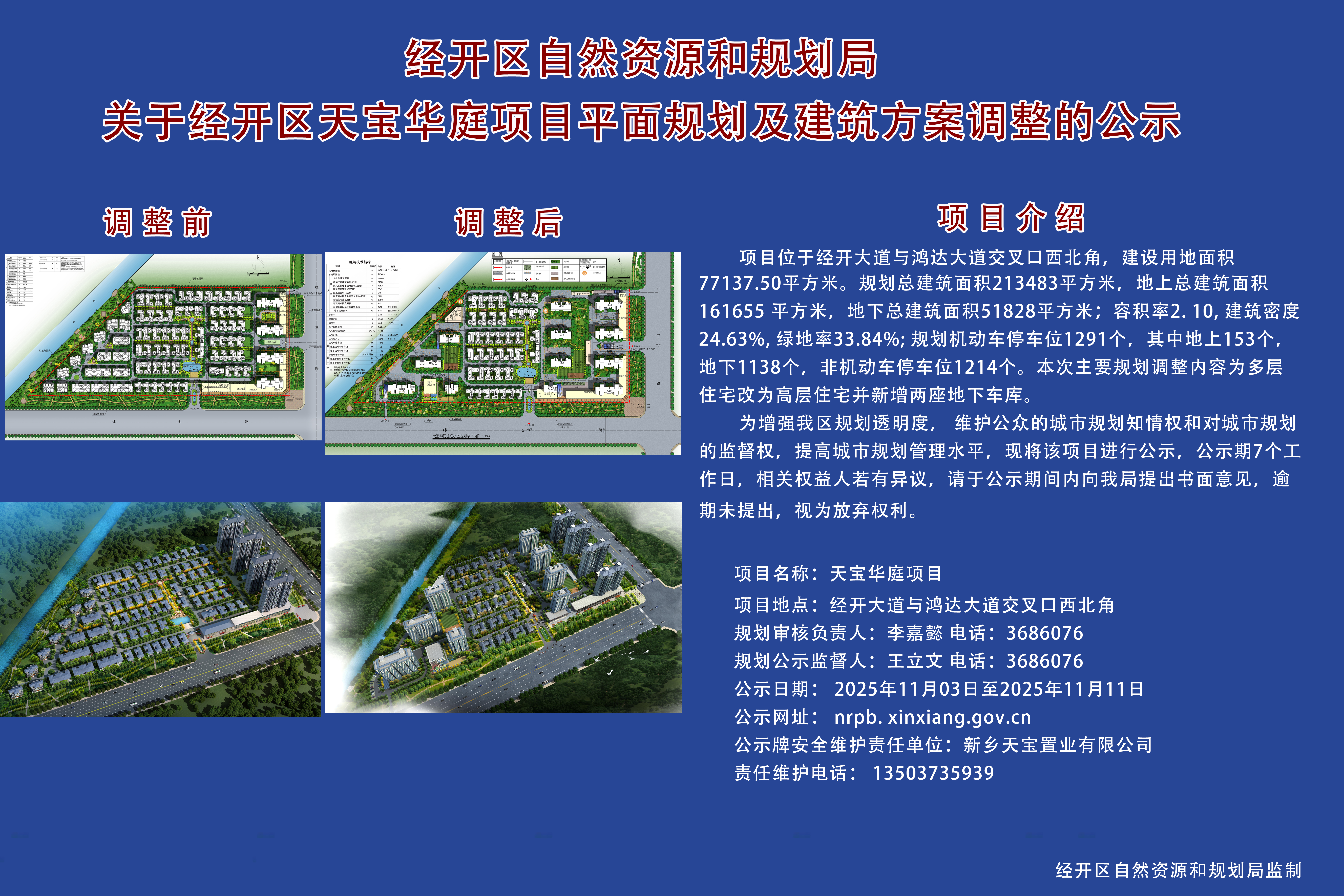 关于经开区天宝华庭项目平面规划及建筑方案调整的批前公示
