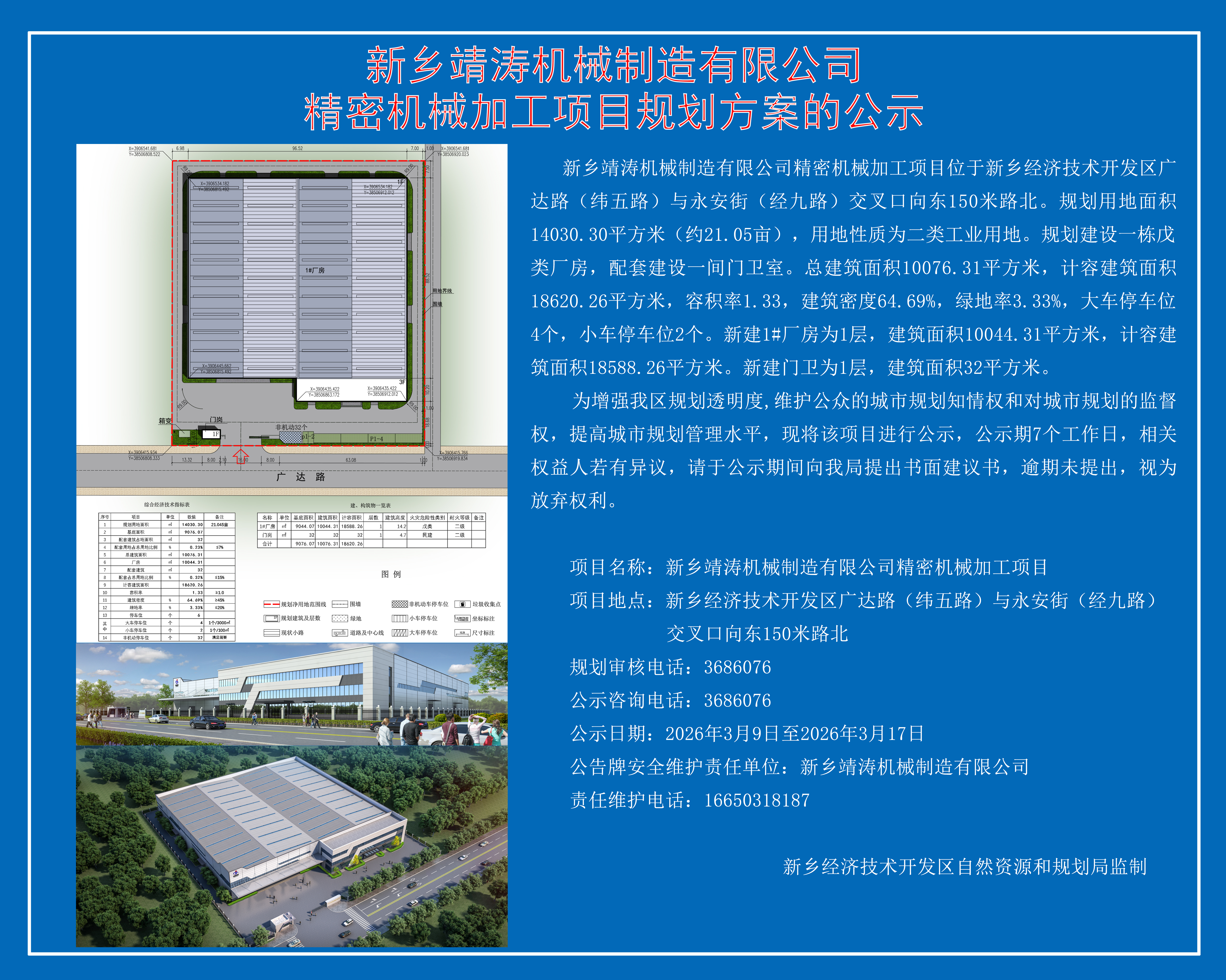 新乡市靖涛机械制造有限公司精密机械加工项目平面规划及建筑方案批前公示(3月9日——3月17日)