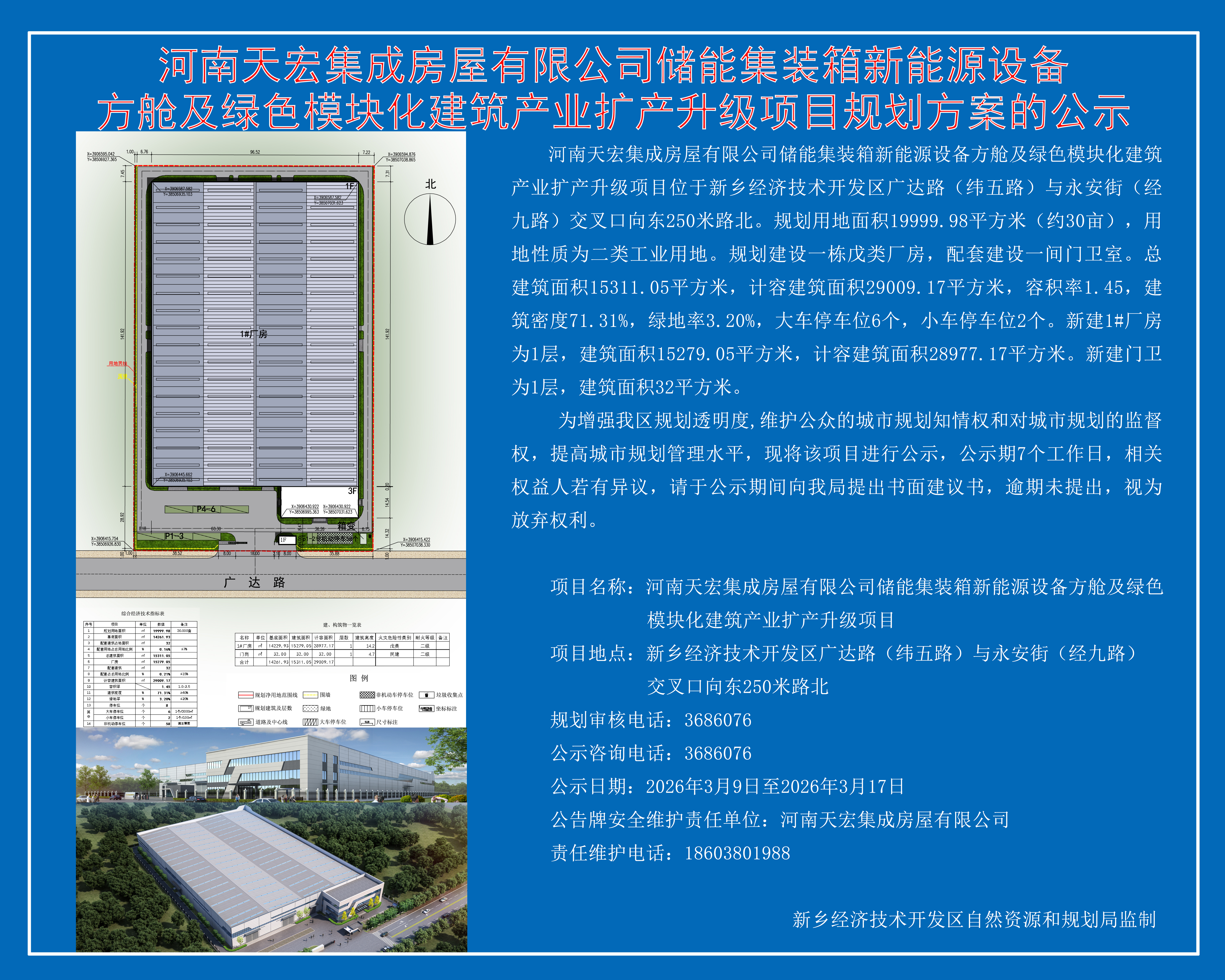 河南天宏集成房屋有限公司储能集装箱新能源设备方舱及绿色模块化建筑产业扩产升级项目平面规划及建筑方案批前公示
