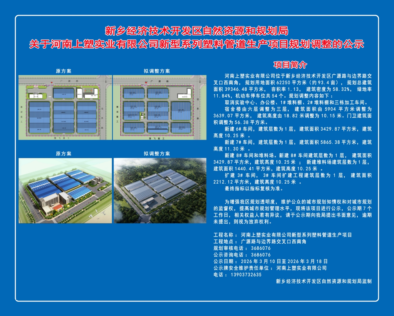 河南上塑实业有限公司平面规划及建筑调整方案批前公示
