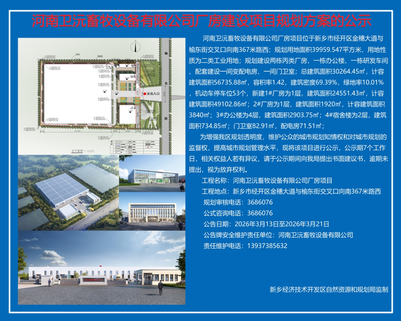 河南卫沅畜牧设备有限公司厂房建设项目批前公示